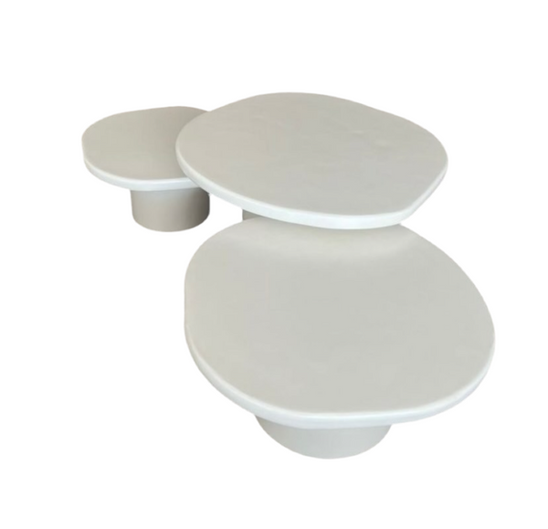 Trio de tables basses en béton ciré.