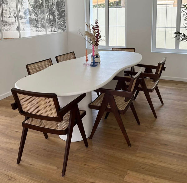 • Évitez de placer des objets chauds ou tranchants directement sur la surface de la table, car ils pourraient endommager la couche de microciment. Utilisez toujours des sous-verres et des sets de table pour la protéger.